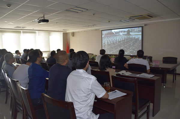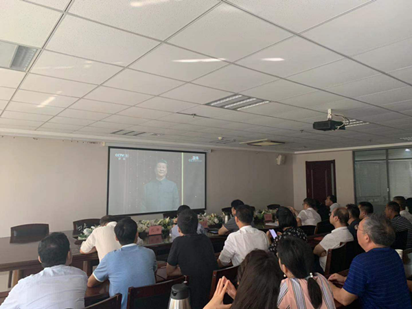 從上午9時(shí)開(kāi)始,市委“不忘初心、牢記使命”主題教育第十五巡回指導(dǎo)組組長(zhǎng)劉健、集團(tuán)公司領(lǐng)導(dǎo)班子成員、機(jī)關(guān)各部門(mén)及市政建管中心干部職工代表共計(jì)60余人來(lái)到25樓會(huì)議,集中觀看慶祝大會(huì)、盛大閱兵和群眾游行。集團(tuán)公司各項(xiàng)目、各控股公司也采取多種形式集中收聽(tīng)收看了慶祝大會(huì)。觀看過(guò)程中,大家始終目不轉(zhuǎn)睛地盯著屏幕,激動(dòng)和自豪之情溢于言表,當(dāng)習(xí)近平總書(shū)記深情呼喊“偉大的中華人民共和國(guó)萬(wàn)歲!偉大的中國(guó)共產(chǎn)黨萬(wàn)歲!偉大的中國(guó)人民萬(wàn)歲!”時(shí),現(xiàn)場(chǎng)掌聲經(jīng)久不息,許多員工熱淚盈眶。