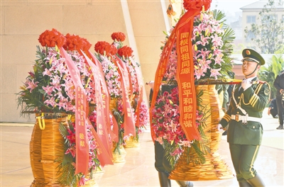 盛世禮炮。全體肅立。鳴炮21響。