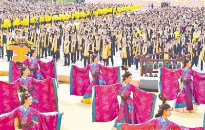 9時40分許,大典主司儀孔昌生宣布甲辰年黃帝故里拜祖大典典禮開始。