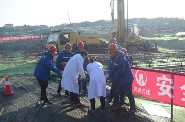 本次安全應(yīng)急演練活動由河南五建建設(shè)集團有限公司、河南新恒豐工程咨詢有限公司承辦。市政工程建設(shè)管理中心項目一部、二部全體員工,集團公司安全管理部代表以及各施工、監(jiān)理代表近百人參加了此次活動。