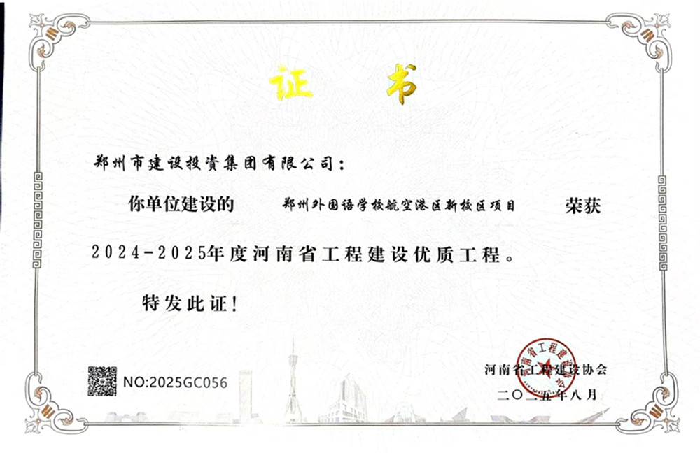近日,由集團(tuán)公司代建的鄭州外國語學(xué)校航空港區(qū)新校區(qū)項(xiàng)目榮獲2024-2025年度河南省工程建設(shè)優(yōu)質(zhì)工程榮譽(yù)。