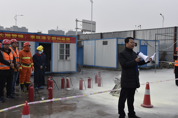 為增強冬季施工安全防范意識,提高妥善應對突發(fā)事故的能力,12月6日,集團市政工程建設管理中心在渠北路二標工程現(xiàn)場舉辦了以消防應急疏散、逃生、救援及消防器材使用為主要內容的消防應急演練活動。集團公司綜合管理部、安全管理部有關人員及在建項目參建單位100余人觀摩了此次活動。