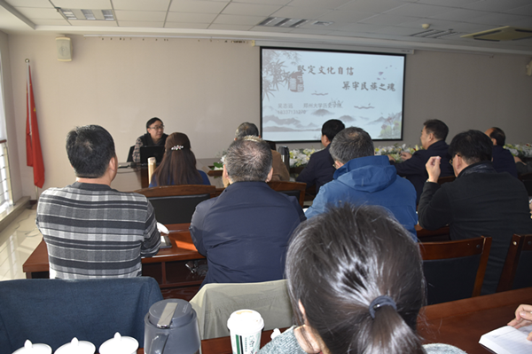 吳教授以《堅(jiān)定文化自信,筑牢民族之魂》為題,圍繞文化自信的含義、牢牢掌握意識形態(tài)工作領(lǐng)導(dǎo)權(quán)、培育和踐行社會主義核心價值觀、繁榮發(fā)展社會主義文藝等四個方面進(jìn)行了專題輔導(dǎo)。他認(rèn)為文化自信是一個民族、一個國家以及一個政黨對自身文化價值的充分肯定和積極踐行,并對其文化的生命力持有的堅(jiān)定信心。他歸納出讓中國人“自信”的“文化”,至少包括三個層面:中華優(yōu)秀傳統(tǒng)文化、革命文化、社會主義先進(jìn)文化。當(dāng)前我們面臨的挑戰(zhàn)和困難前所未有,境內(nèi)外敵對勢力插手意識形態(tài)斗爭的情況越來越復(fù)雜,形勢越來越嚴(yán)峻,多種勢力聯(lián)手,通過網(wǎng)絡(luò)、新媒體等各種手段,妄圖摧毀中國人的自信和共產(chǎn)黨的執(zhí)政根基。我們要按照習(xí)總書記的要求,堅(jiān)持黨管意識形態(tài)原則不動搖,進(jìn)一步堅(jiān)定共產(chǎn)主義理想信念,從我做起,從現(xiàn)在做起,在意識形態(tài)斗爭中做到對黨忠誠、個人干凈、敢于擔(dān)當(dāng),對一些意識形態(tài)的挑戰(zhàn)要敢于亮劍。