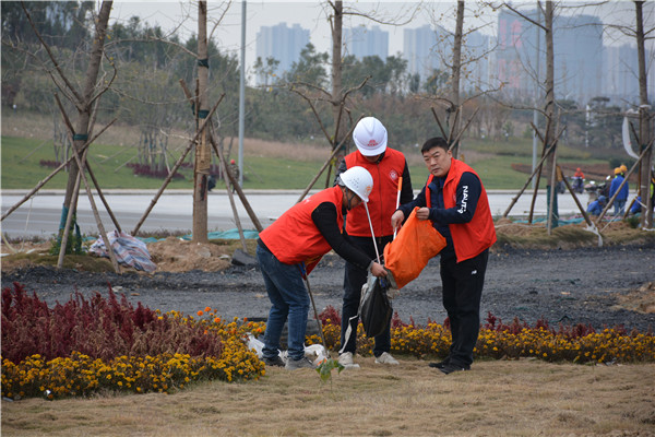 上午十時三十分,志愿服務(wù)活動開始后,集團(tuán)公司黨委委員、副總經(jīng)理、項目部總經(jīng)理汪洋親自帶頭參加活動,其他黨員干部帶頭干,職工群眾積極干,參建單位負(fù)責(zé)人志愿加入干,大家拿起工具、彎下腰去,撿起草地上的生活垃圾,集中放進(jìn)現(xiàn)場放置的垃圾桶內(nèi);沒有拿到工具的同志們也拿起簡易垃圾袋,將撿到的生活垃圾放進(jìn)垃圾袋盛滿后再放進(jìn)垃圾桶內(nèi)。一時間,黨徽熠熠、愛心閃閃、干勁滿滿,不到一個小時時間,約20人的志愿服務(wù)隊伍完成了近20000平米區(qū)域的垃圾清理任務(wù),景觀施工現(xiàn)場面貌大為改觀。
