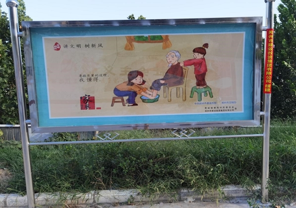 四、設置宣傳載體,營造文明家園濃郁氛圍。今年,集團公司為郭崗村提供3萬余元幫扶資金幫助其打造了精神文明專欄,分為家風家訓(名人家風)專欄,“講文明 樹新風”(孝當先、傳承家風)、“文明健康 有你有我”公益廣告等內(nèi)容,使社會主義核心價值觀深刻融入到村民的生產(chǎn)生活和精神世界,形成全體村民的修身行善共識和明禮守法自覺,為促進郭崗村經(jīng)濟健康發(fā)展、構建美麗鄉(xiāng)村、文明家園打下良好根基。
